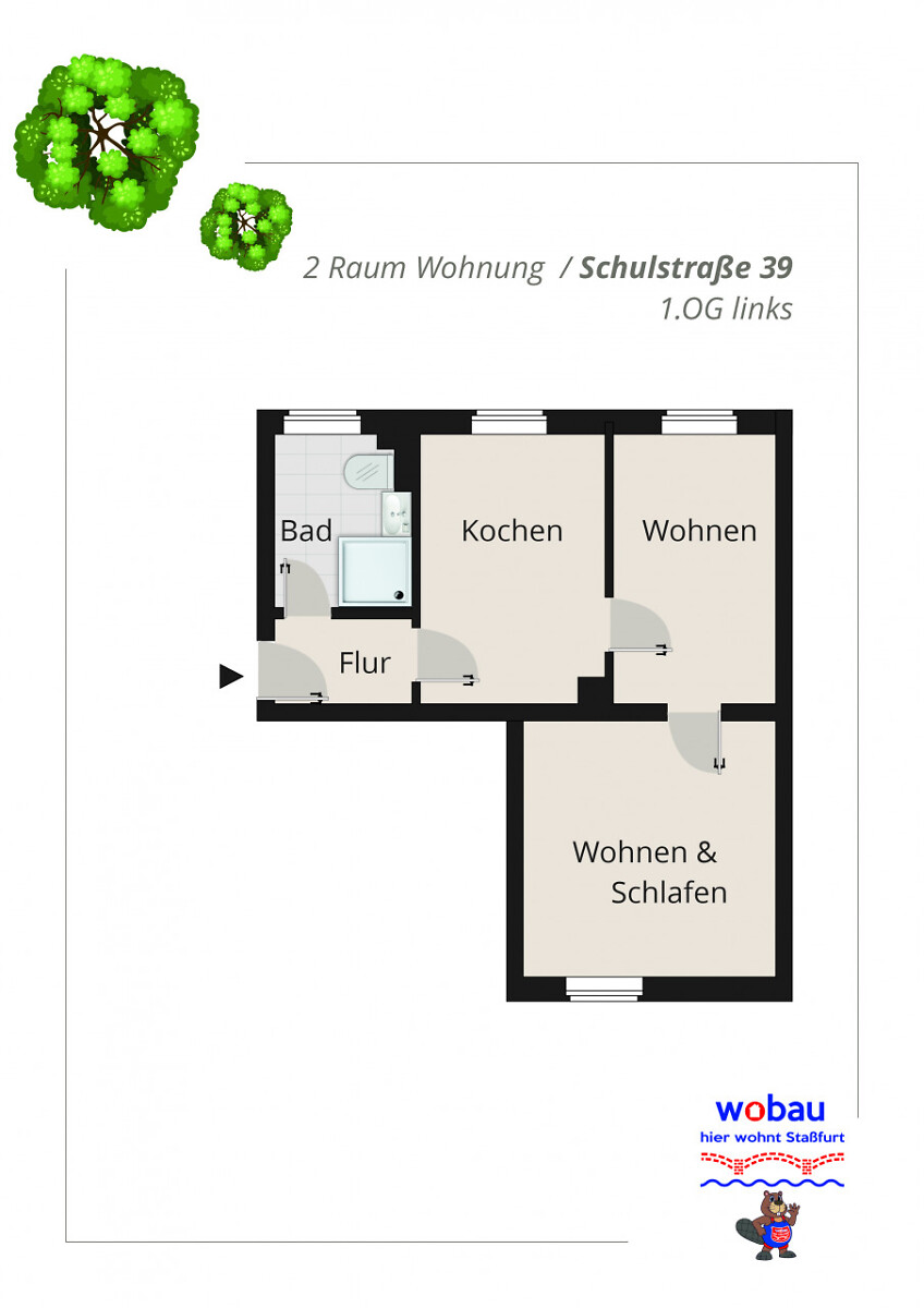Die kleine 2 Raum-Wohnung hat eine schöne große Küche. Das schöne helle Bad ist mit einer Dusche ausgestattet. Auch die Waschmaschine hat dort genügend Platz.